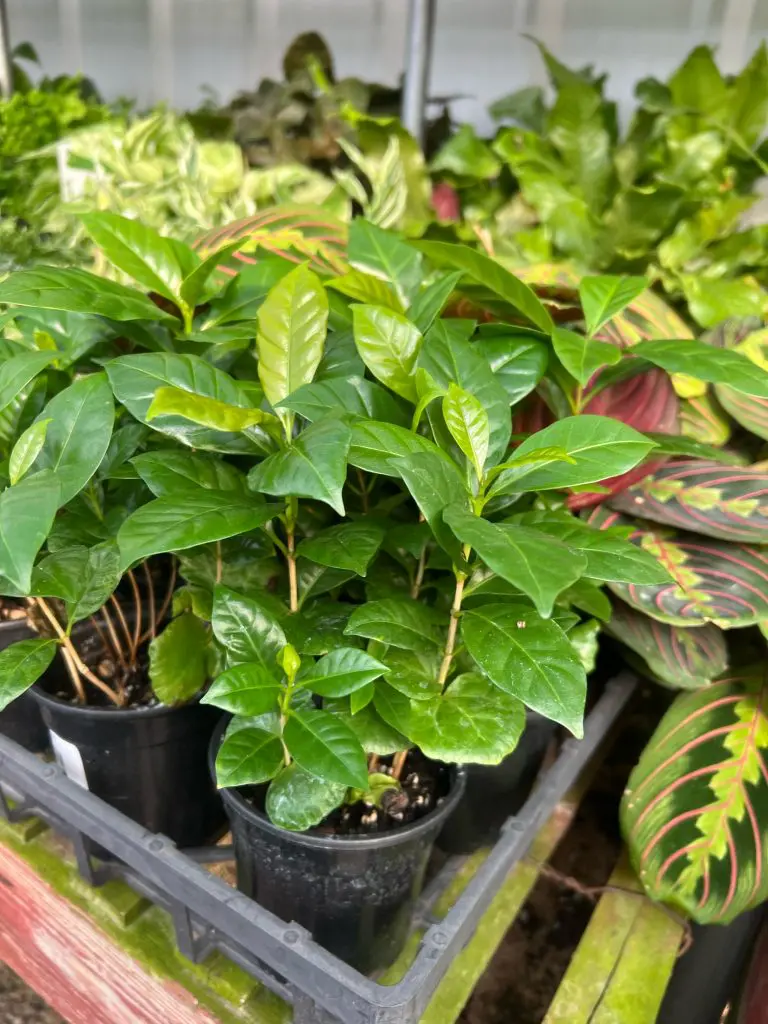 Pruning instructions: prune in the late winter/early spring to maintain desired shape and size, harvest coffee beans in the winter